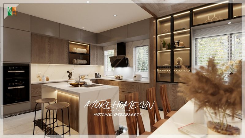 Thiết kế nội thất phòng bếp hiện đại, tiện nghi cho không gian biệt thự