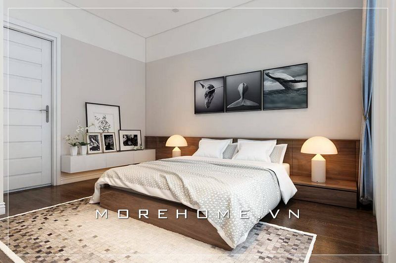Giường ngủ gỗ công nghiệp kiểu dáng thấp tạo sự thoáng đãng hơn cho phòng ngủ chung cư nhỏ