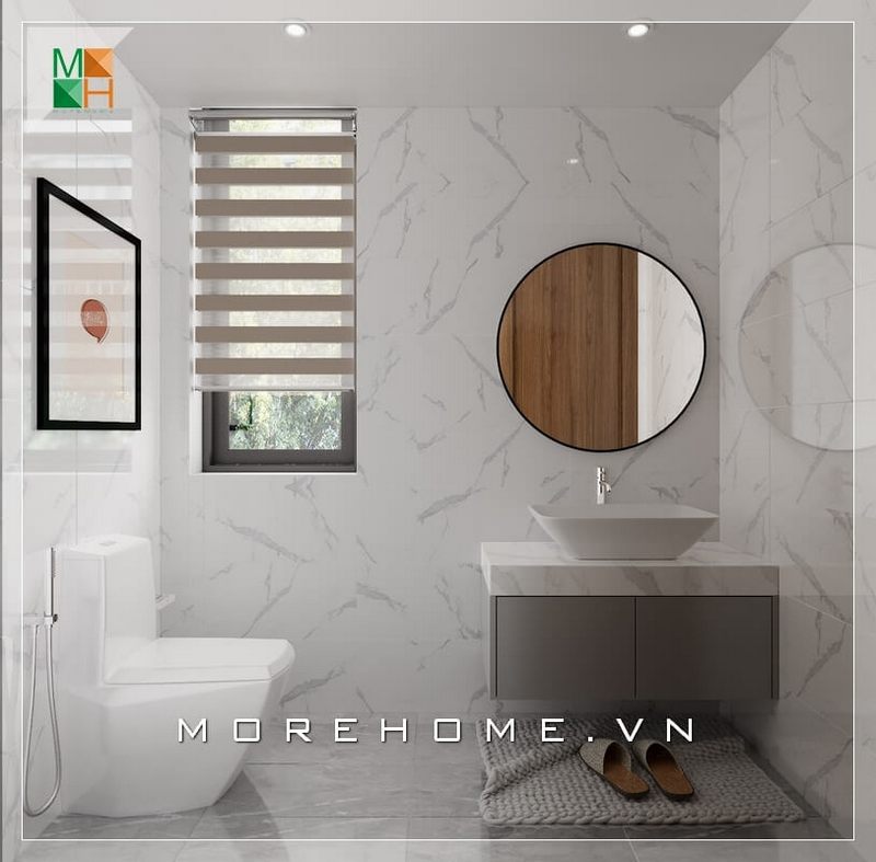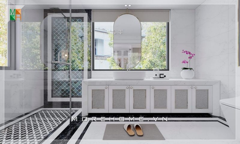 Thiết kế nội thất phòng WC chung sang chảnh.