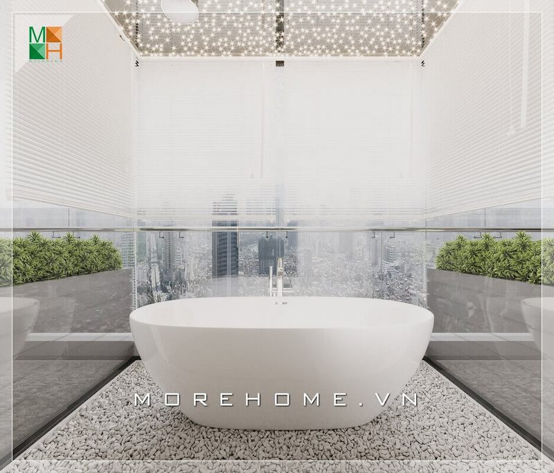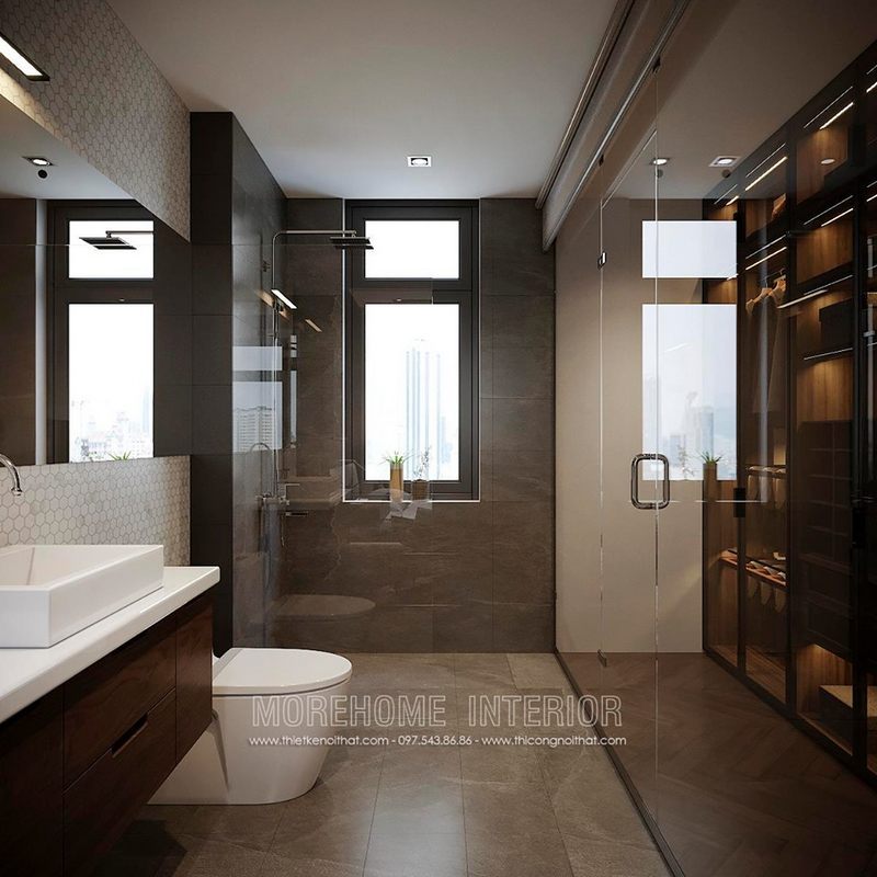 Phòng tắm kính sang trọng đem đến sự sang trọng, tăng thêm tính lịch sự cho không gian căn hộ. Với cách sắp xếp bố trí nội thất khoa học góp phần giúp không gian phòng tắm trở nên thoáng mát, hoàn mỹ hơn.