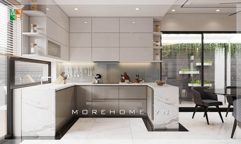 Chia sẻ mẫu thiết kế nội thất bếp chữ U hiện đại dành cho không gian chung cư, nhà phố, biệt thự.