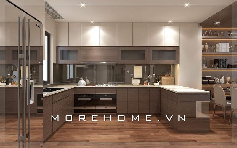 Thiết kế nội thất bếp hiện đại, bếp chữ u rất hiện đại và đẹp dành cho biệt thự, nhà phố.