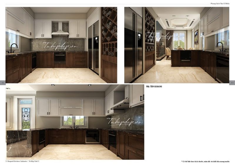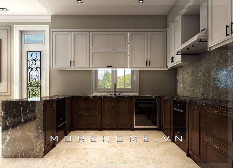 Mẫu tủ bếp chữ u thiết kế cực kỳ quý phái và trang nhã đặc biệt dành riêng cho những biệt thự tân cổ điển