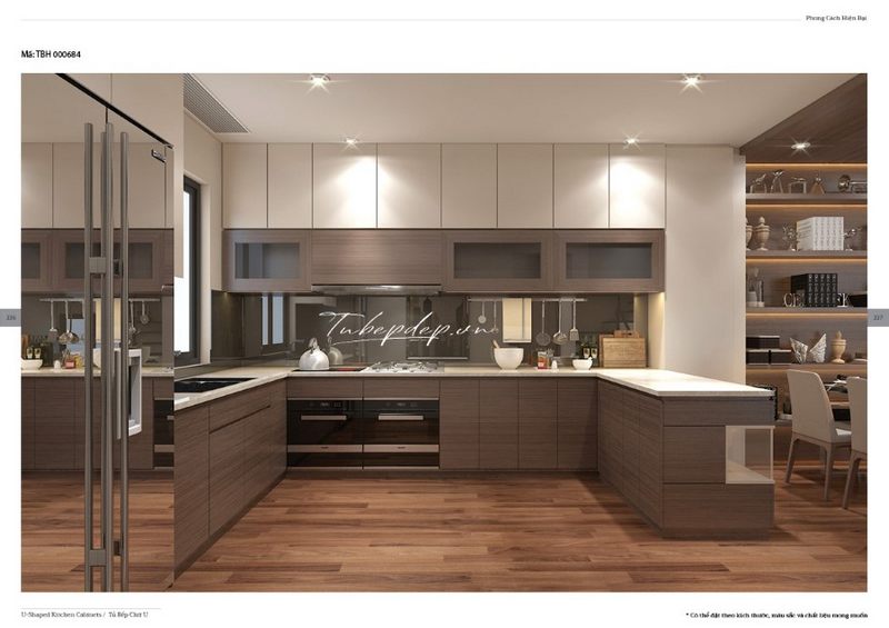 Tủ bếp chữ U hiện đại, đẹp cho phòng bếp biệt thự, nhà phố.