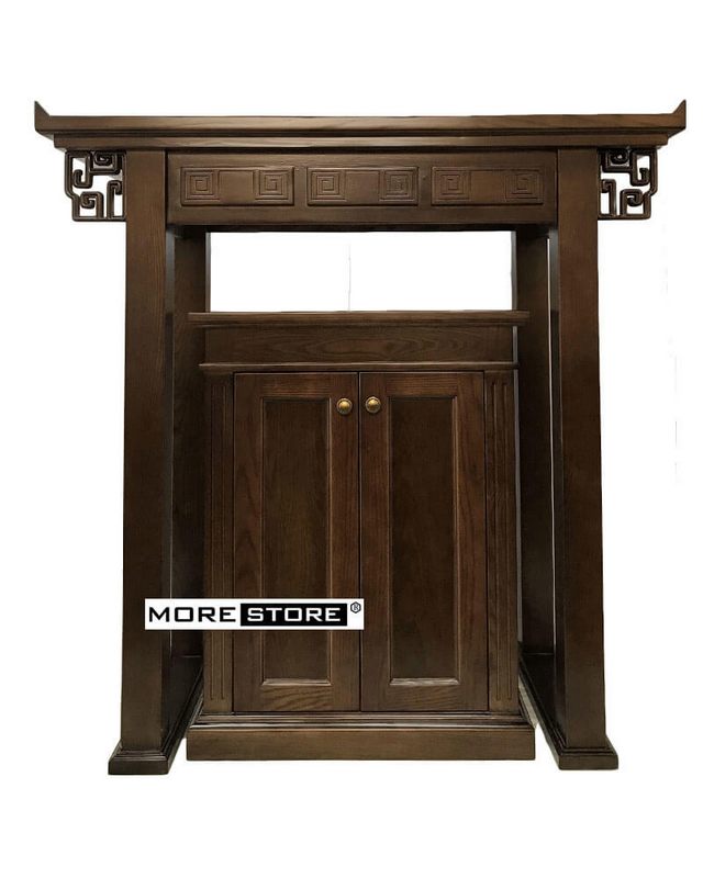 Mẫu bàn thờ gỗ sồi màu nâu trầm cao cấp với kích thích nhỏ gọn phù hợp với căn hộ chung cư giúp tiết kiệm diện tích không gian.