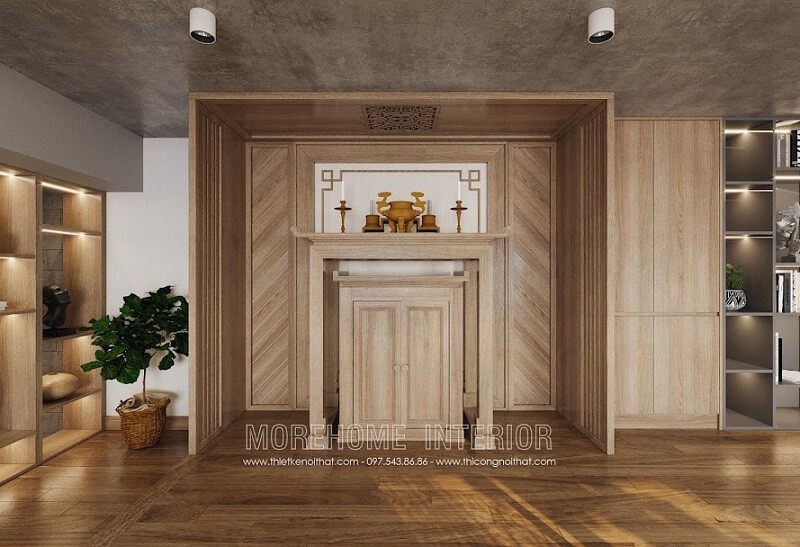 Mẫu bàn thờ gỗ tự nhiên cho phòng khách chung cư sang trọng, đẳng cấp