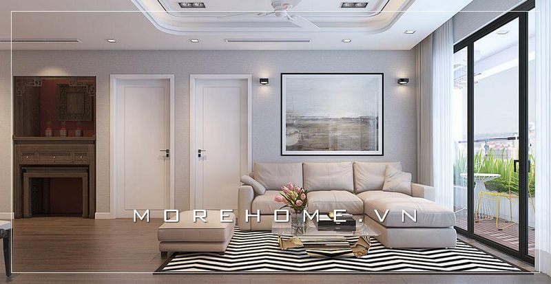 Bộ sofa bọc nỉ màu be sữa cao cấp tạo điểm nhấn nổi bật cho không gian phòng khách chung cư
