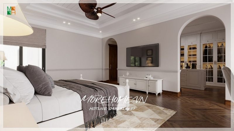 Tủ quần áo âm tường chạm trần cho phòng ngủ chung cư giúp tối ưu không gian
