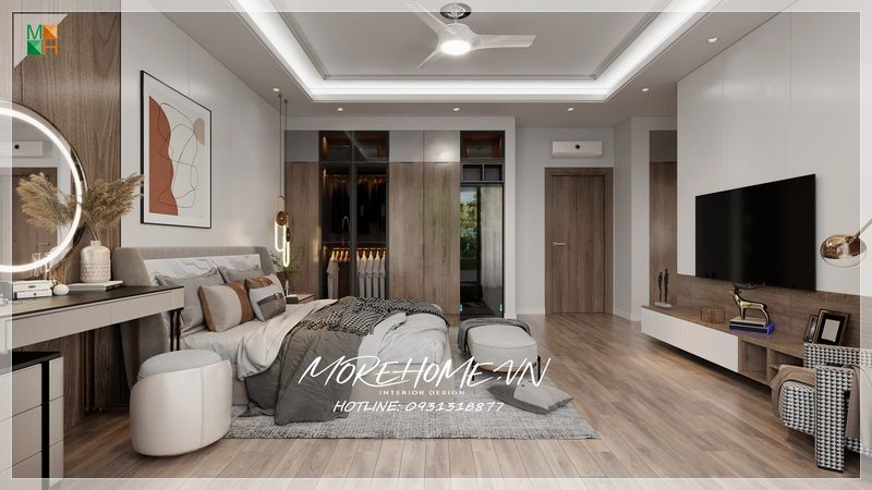 Sàn gỗ được trải thảm cũng mang lại sự ấm áp cho căn phòng và tính trang trí được nâng lên.