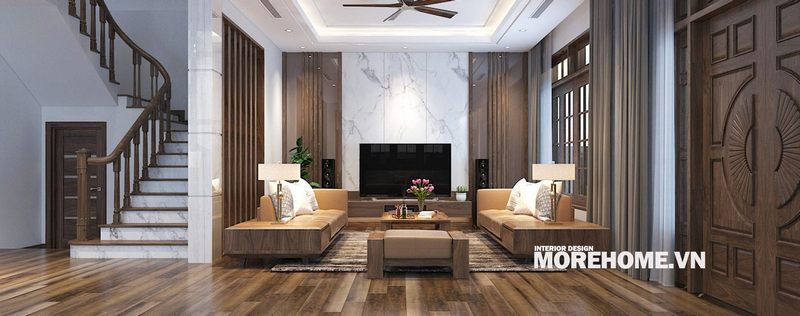 Chọn thiết kế cầu thang gỗ óc chó song đôi cao cấp có trụ vuông hiện đại để làm nền tảng cho không gian biệt thự, nhà phố hoặc chung cư rộng lớn.
