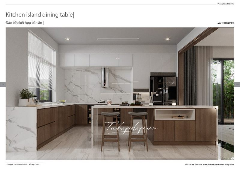 Việc thiết kế một bàn đảo tiện lợi trong không gian bếp ăn của các biệt thự, nhà phố hiện đại là một lựa chọn được nhiều chủ nhà yêu thích.