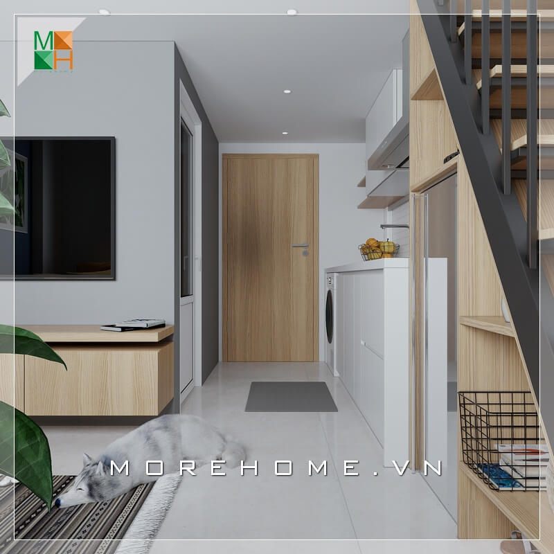 Thiết kế nội thất phòng bếp hiện đại và thuận tiện cho người nội trợ ở căn hộ chung cư.