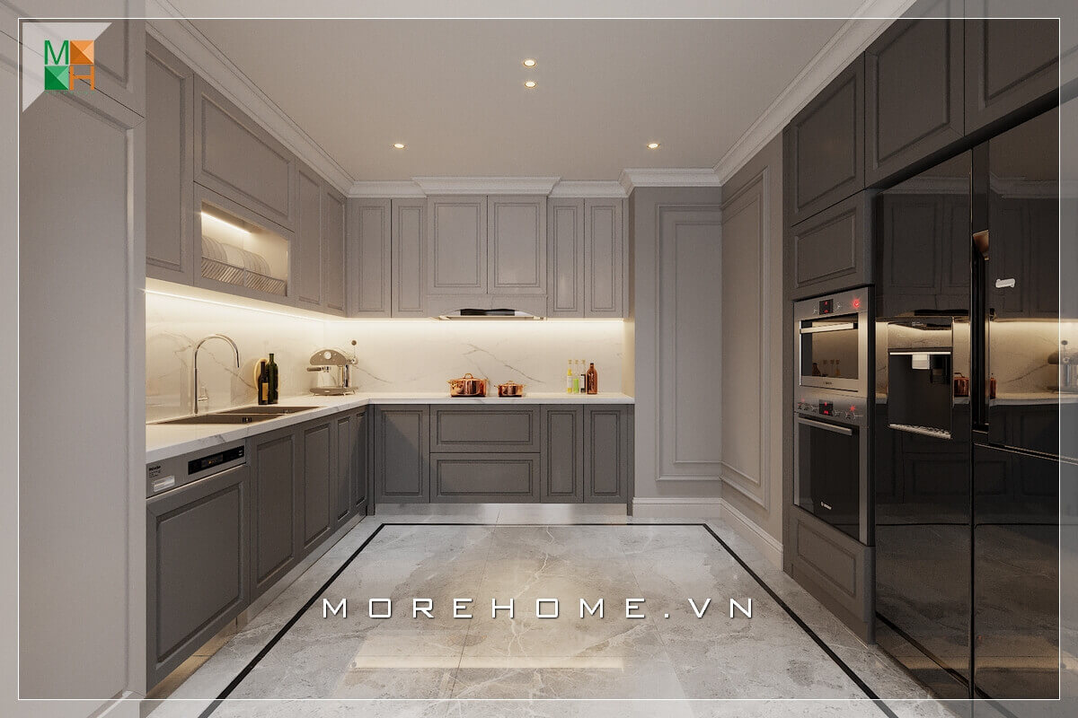 Thiết kế nội thất bếp chung cư, biệt thự, nhà phố đẹp, mang phong cách tân cổ điển sang trọng và tiện nghi là lựa chọn của nhiều gia đình.